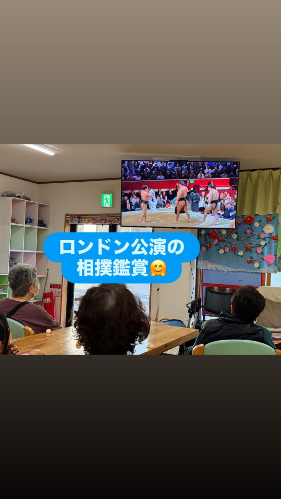 帰りの送迎待ちでは先日のロンドン公演の相撲を観ました😄