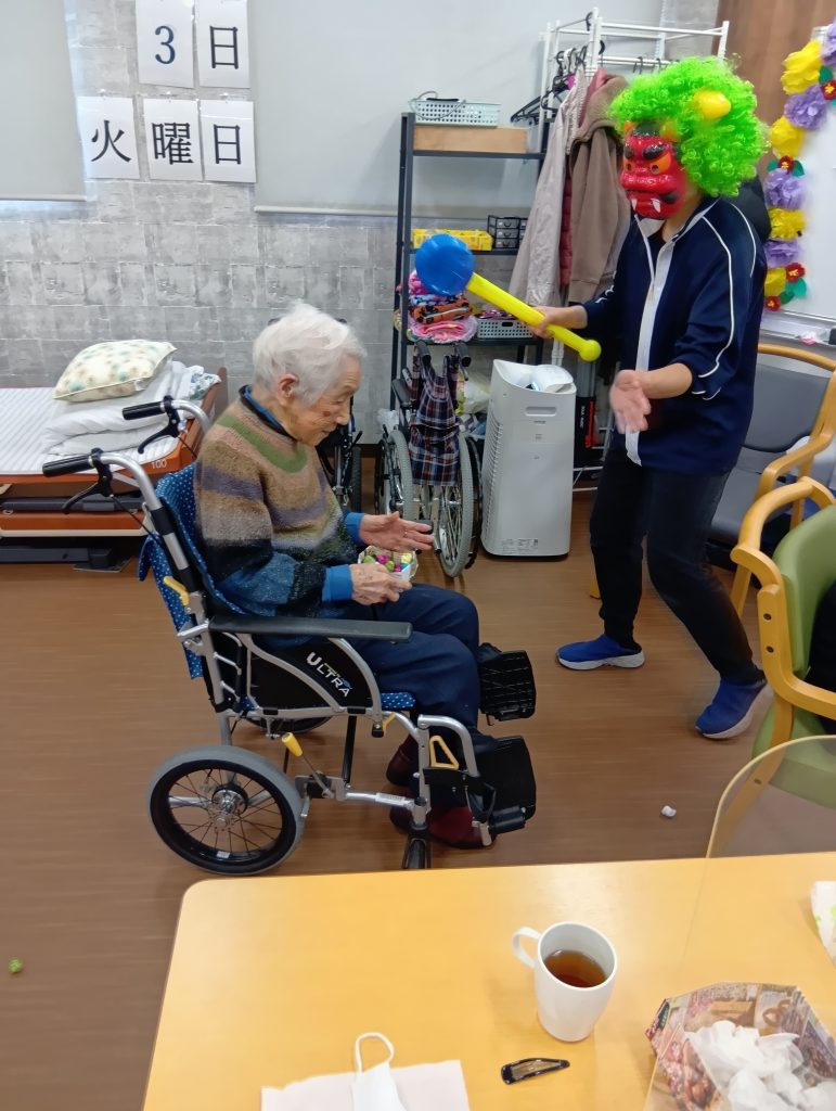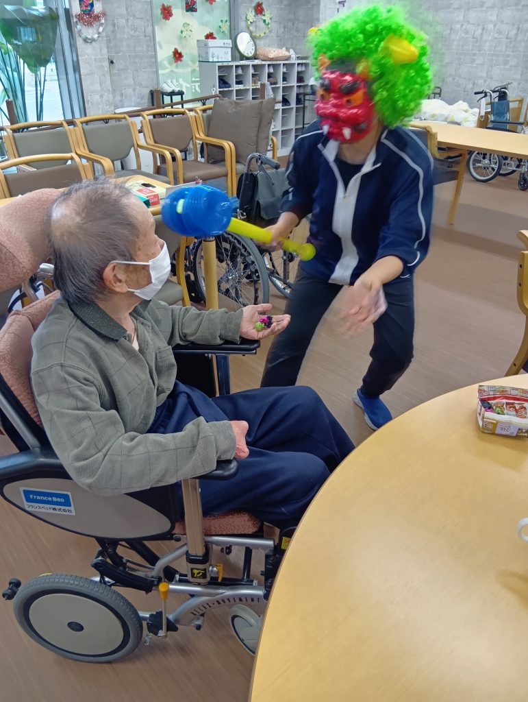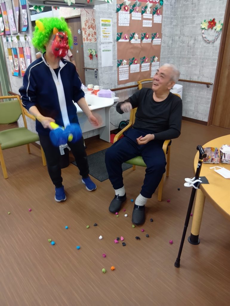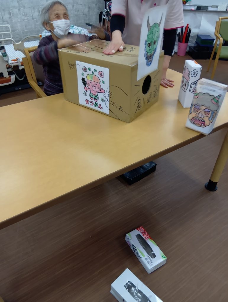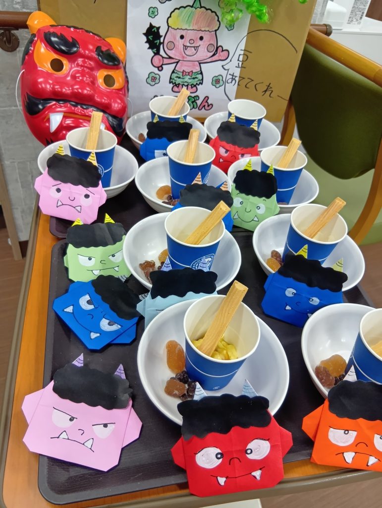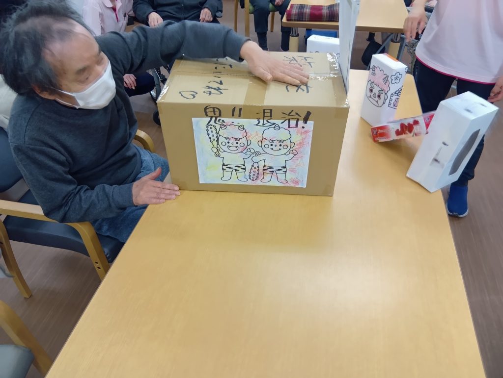 2月3日の『節分』では豆まきを行い厄払いをしました👹