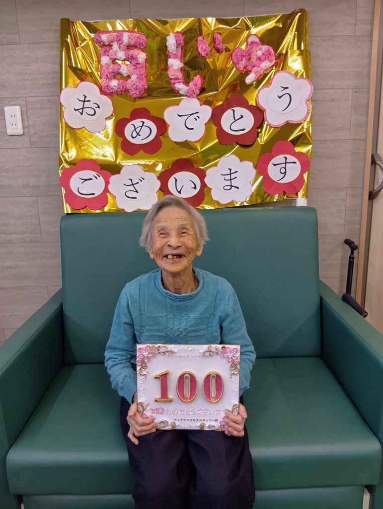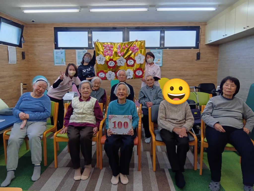 月曜日は100歳の利用者様のお誕生日会を皆さんでお祝いしました!