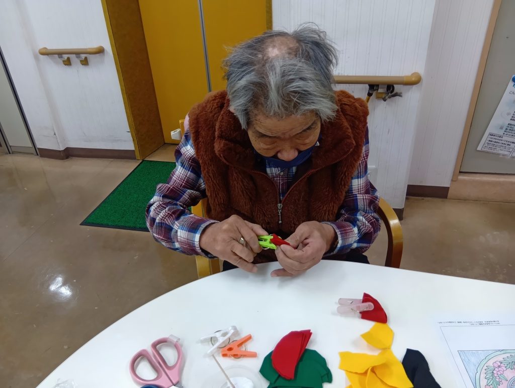 今月の工作 「節分の鬼さん」の続きを作られています♪