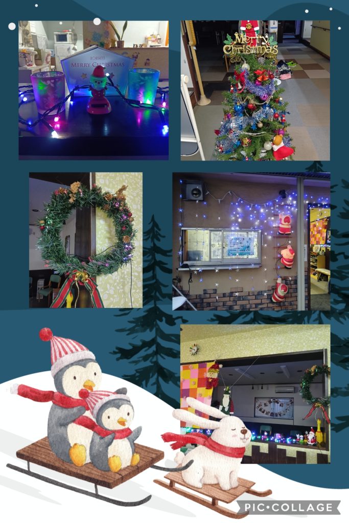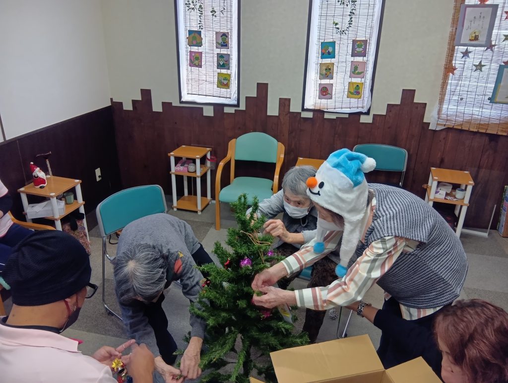 🎄の飾りや、飾りを袋から出して準備は、利用者さまがしてくださり、部屋の飾りつけはスタッフがしました。