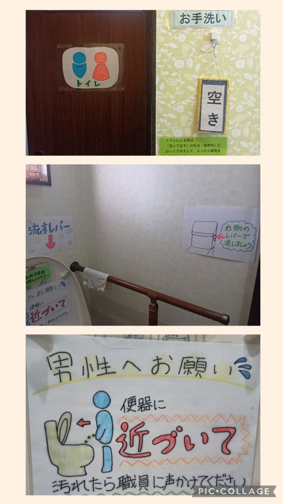ご利用者様のなかには認知症の方や物忘れ症状で、お手洗いの使い方が